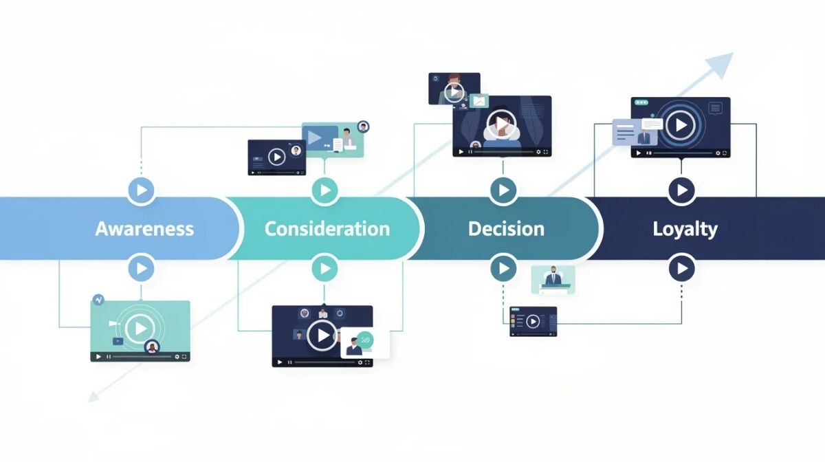Different decision stages need different video content. A brand video works at awareness. An explainer video or product demo works at consideration. A customer testimonial closes the gap at the decision stage. Build your video strategy around this progression, not around what is easiest to produce.